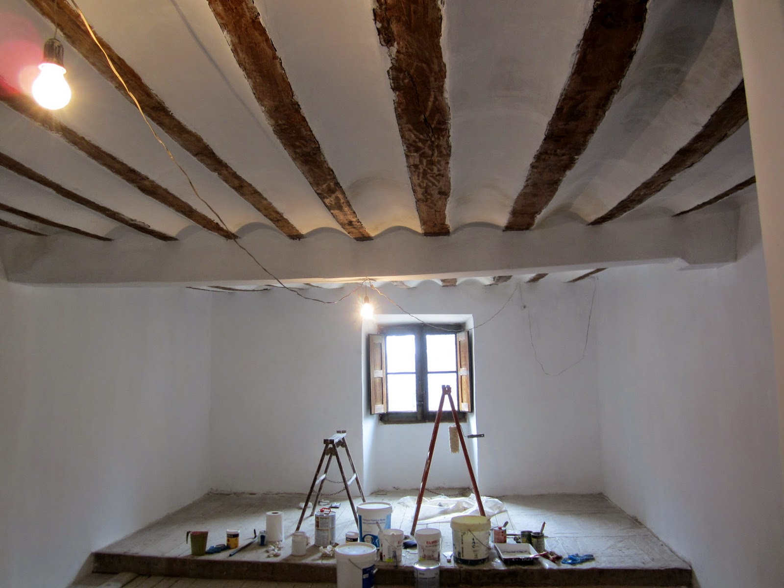 Mi fachada soporta con dignidad y sin reparación alguna la prolongada exposición a las inclemencias del tiempo. Hasta hace poco una colonia de hongos devoraba mi techumbre y mis paredes. La humedad de la que se alimentaban atacaba mis cimientos generando una panza en suelos y techos que me ha combado y deformado. Estoy encorvada y maltrecha pero aquí continúo herida de soledades e imperfecta. Sin embargo, en los últimos meses he sufrido transformaciones vitales que han evitado mi derrumbe. La financiación de estos logros ha corrido a cargo del Ayuntamiento del pueblo que vio levantar mis cimientos. Muy de continuo un puñado de hombres y mujeres han acometido las intervenciones básicas necesarias para mantenerme en pie. Me consta que no han escatimado ni en esfuerzos ni en ilusión pese a la dureza del trabajo. Los techos ya no se caerán, ni las paredes cederán, pues han erradicado la peligrosidad que antes existía para acceder a mi carcasa.