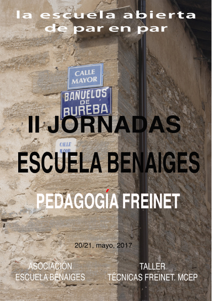 II Jornadas Escuela Benaiges-Pedagogía Freinet, que desarrollaremos en Bañuelos los días 20 y 21 de mayo.