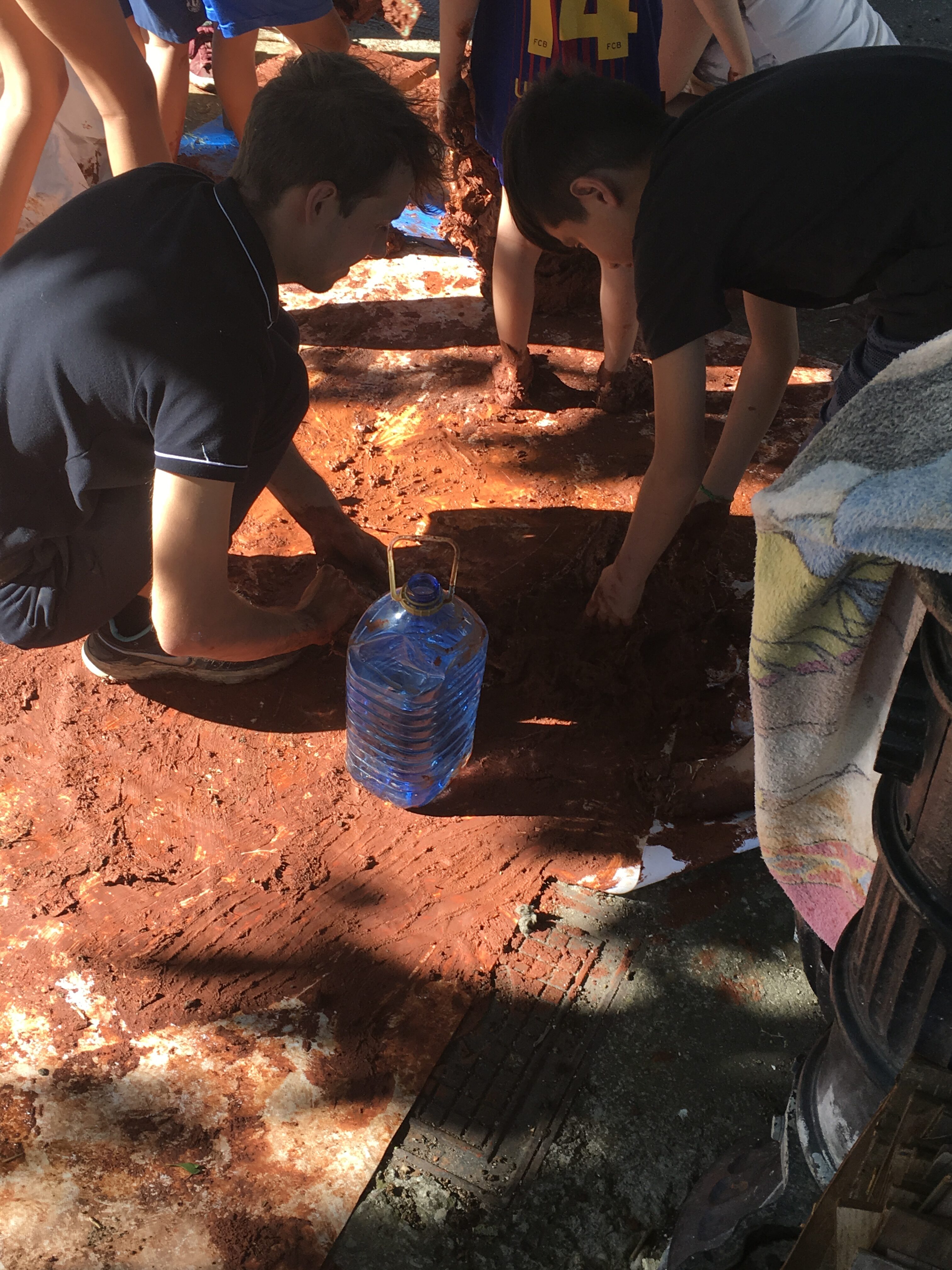 La plaza de Bañuelos se convirtió es un hervidero de barro y niños haciendo adobes.