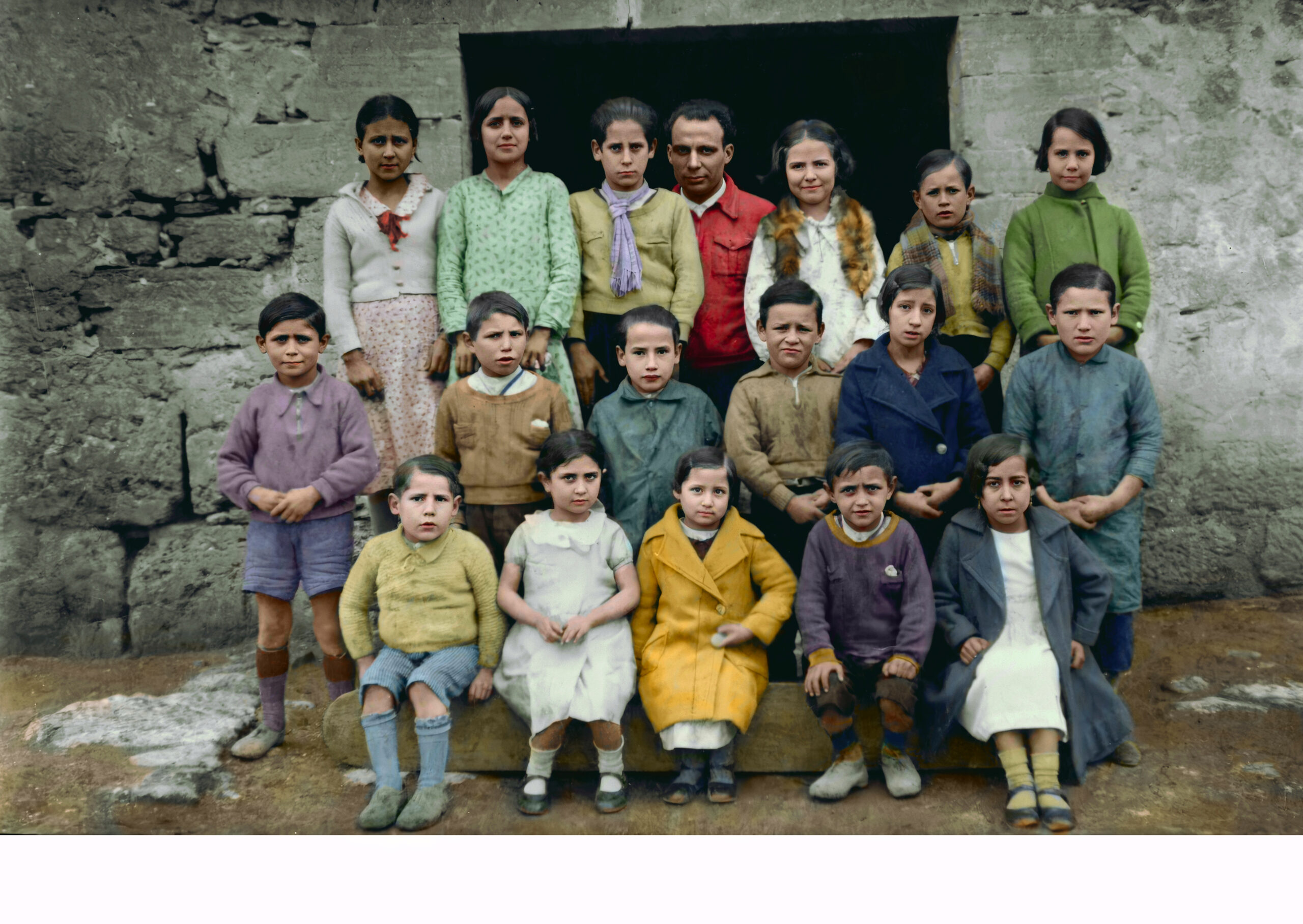 Excelente trabajo el realizado por Tina Paterson con la fotografía de los niños de Bañuelos con su maestro en la puerta de la escuela, el día que el retratista visito Bañuelos, con este trabajo los niños y su maestro cobran vida y nos acercan a la realidad del momento de la foto, dándonos a conocer los rostros que en la foto original aparecen borrosos y sin apenas definición de sus rasgos, con este magnífico trabajo podemos apreciar perfectamente los rostros de todos los personajes que aparecen en la foto.Iremos publicando la foto individual de cada niño para que se pueda apreciar el espectacular trabajo de este artista